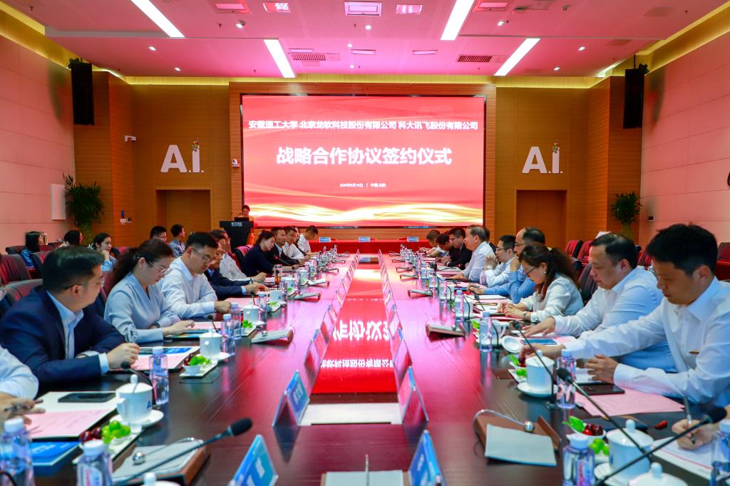 安徽理工大學(xué)科研部負(fù)責(zé)人劉輝,龍軟科技董事、副總經(jīng)理高志譽(yù),科大訊飛副總裁、安徽大區(qū)總經(jīng)理李紅明分別代表三方簽約。中國(guó)工程院院士、安徽理工大學(xué)黨委副書記、校長(zhǎng)袁亮,北京大學(xué)教授、龍軟科技董事長(zhǎng)毛善君,科大訊飛董事長(zhǎng)劉慶峰等出席并見(jiàn)證簽約。