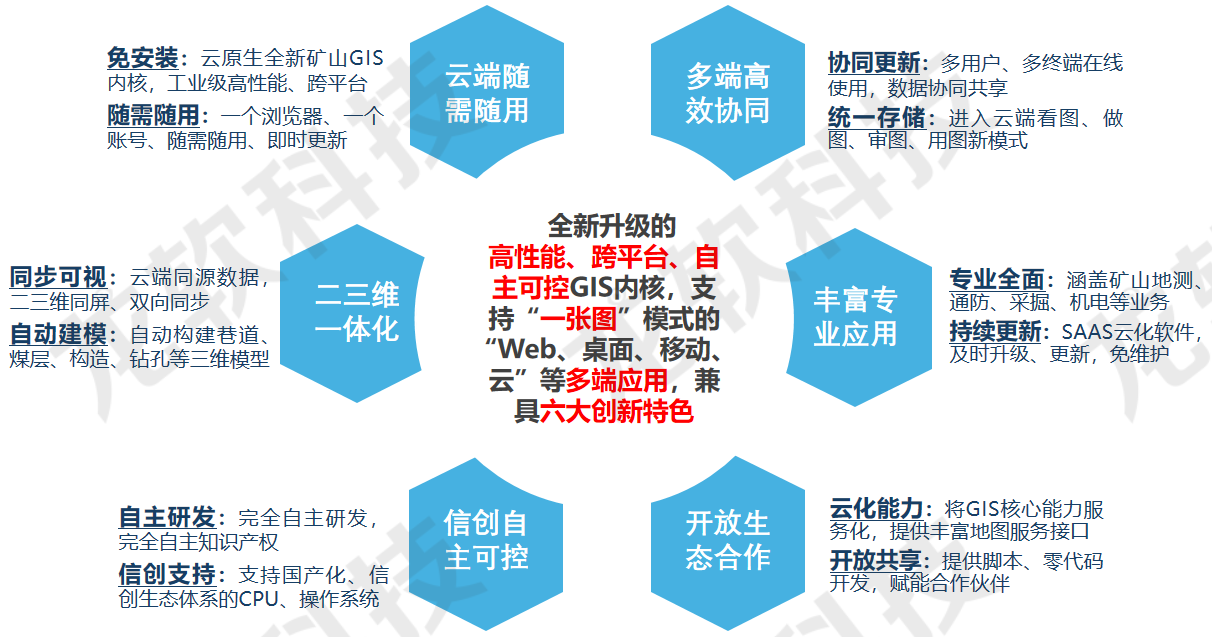 基于云服務架構的龍軟云GIS(云地理信息系統,簡稱“龍軟智圖v1.0”)龍軟科技從底層開發的、具有完全自主知識產權的新一代專業地理信息系統。該產品基于云服務、大數據、分布式協同、時空智能等技術,針對礦山地測防治水、透明化地測保障、一通三防、采礦設計和供電設計等多維專題圖形處理實際需求,采用面向服務的架構體系開發,具有實用、易用、先進、可靠、可擴展等特點。
