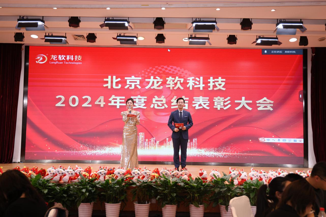 2025 年 1 月 25 日,龍軟科技 2024 年度總結表彰大會暨2025年新春團拜會在北大博雅國際酒店中華廳隆重舉行。本次會議以“創新科技、賦能未來”為主題,旨在總結過去一年的經驗和成績,展望未來的發展藍圖,同時表彰在各自崗位上做出杰出貢獻的員工,并為全體員工送上誠摯的新春祝福。